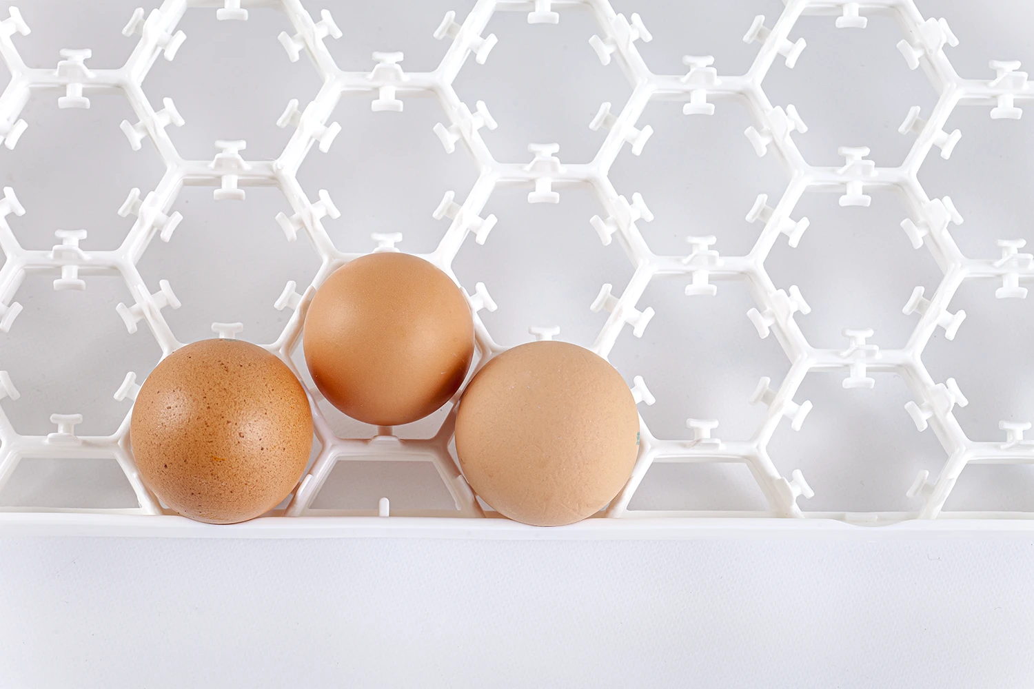 Nos supports d’œufs sont arrondis et suivent la forme de l’œuf pour réduire les fissures. Nos ailes sont parfaitement arrondies pour éviter la casse lors du ramassage.